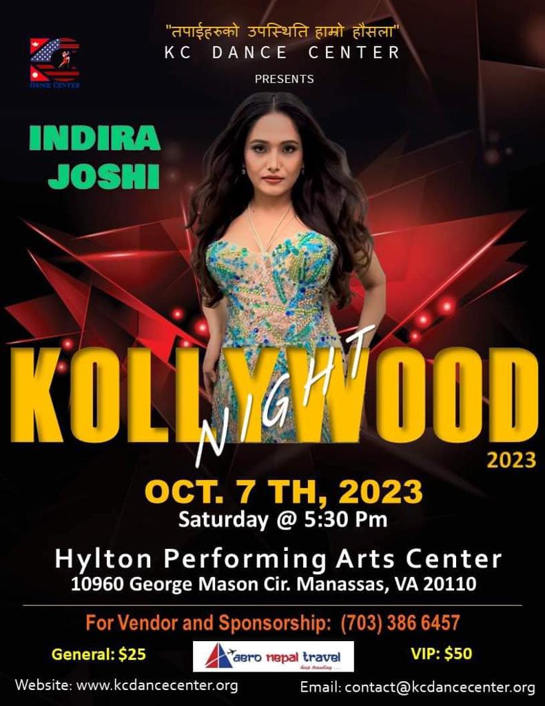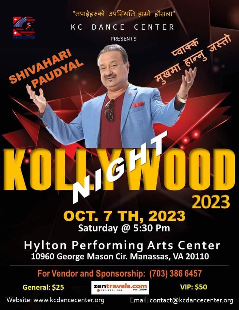 Virginia: On Saturday, October 7th, 2023, KC Dance Center presents “Kollywood Night” at the Hylton Performing Arts Center, located at 10960 George Mason Circle, Manassas, VA 20110. The event will begin at 5.30 p.m. Prepare to be spellbound by the magic of “Kollywood”. Famous vocalist Indira Joshi and comedian Shivahari Paudyal are just two of the many fascinating performers scheduled for the event. Kollywood Night, with the motto “Make you sing, make you dance, and make you laugh,” is anticipated to be a dazzling exhibition of talent from the Nepali entertainment industry.